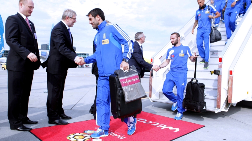Η αποστολή της Ελλάδας αναχώρησε από το «Ελ. Βενιζέλος» στις 15:30 το μεσημέρι και λίγο μετά τις 19:00 το απόγευμα έφτασε στην πρωτεύουσα της Πολωνίας. Εκεί είχαν συγκεντρωθεί από νωρίς αρκετοί φίλοι της γαλανόλευκης οι οποίοι αποθέωσαν τους διεθνείς και τον Σάντος όταν έκαναν την εμφάνισή τους.